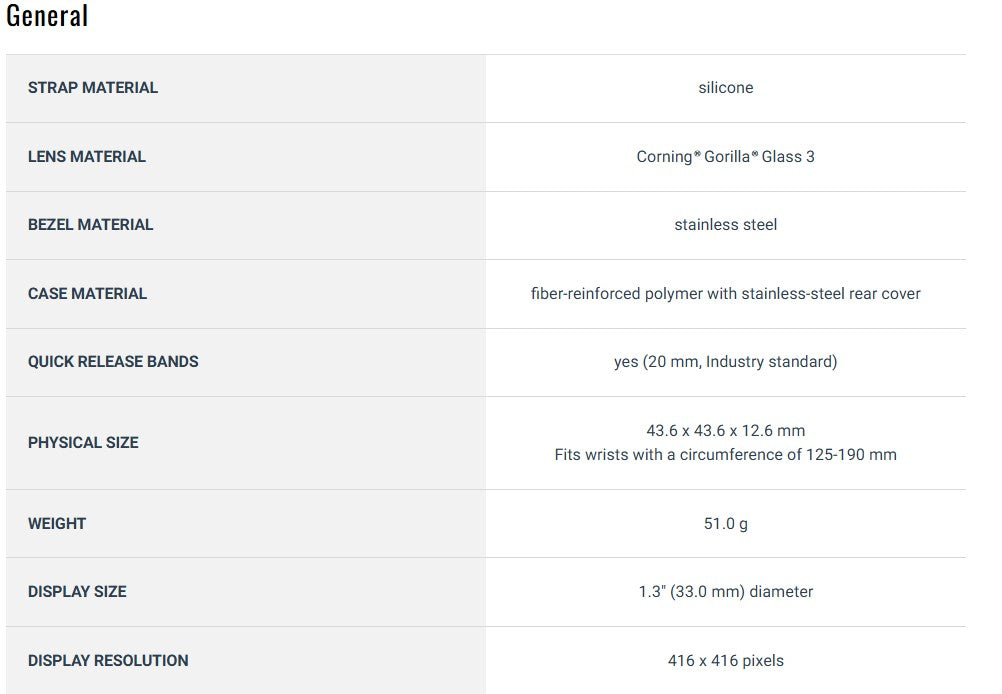 • Material: Stainless steel bezel with rugged Corning® Gorilla® Glass 3.