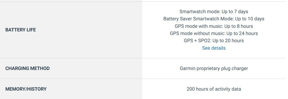 • Battery Life: Enjoy up to 7 days in smartwatch mode and 20 hours in GPS mode.