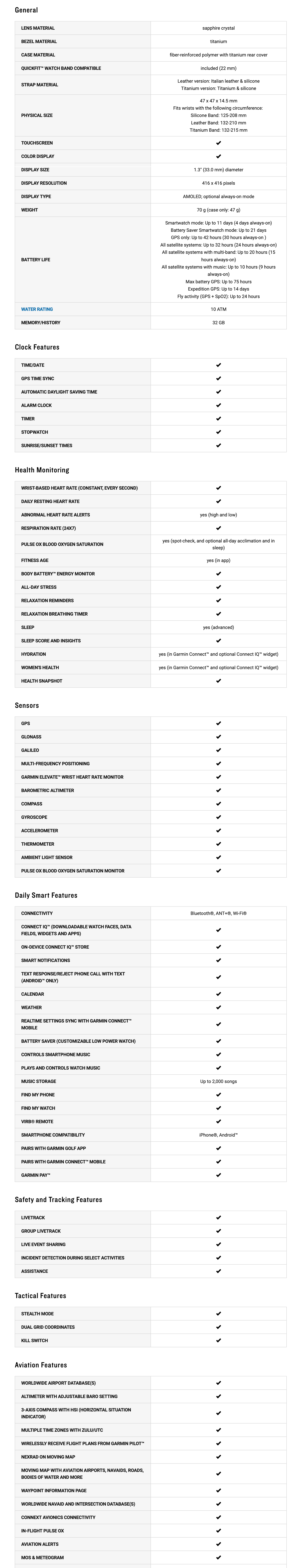 In summary, the Garmin D2 Mach 1 is an essential tool for any serious pilot. Its combination of advanced navigation features, health monitoring, and premium design makes it a must-have for those who prioritize performance and elegance in their flying experience. Elevate your adventures and explore new horizons with the Garmin D2 Mach 1. Don’t miss out—make this high-performance smartwatch your trusted co-pilot today!