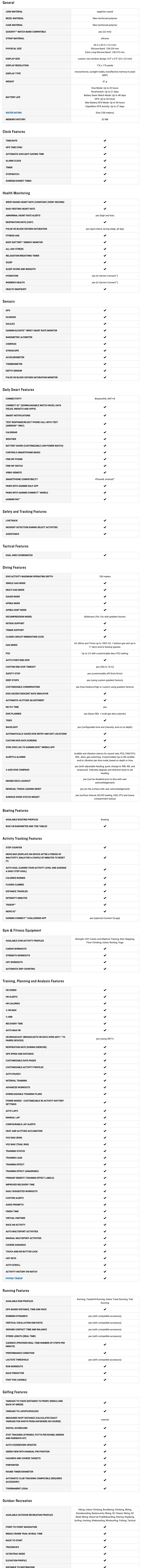 • Comprehensive Dive Log: Store and review data for up to 200 dives and share your experiences through the Garmin Dive app.
