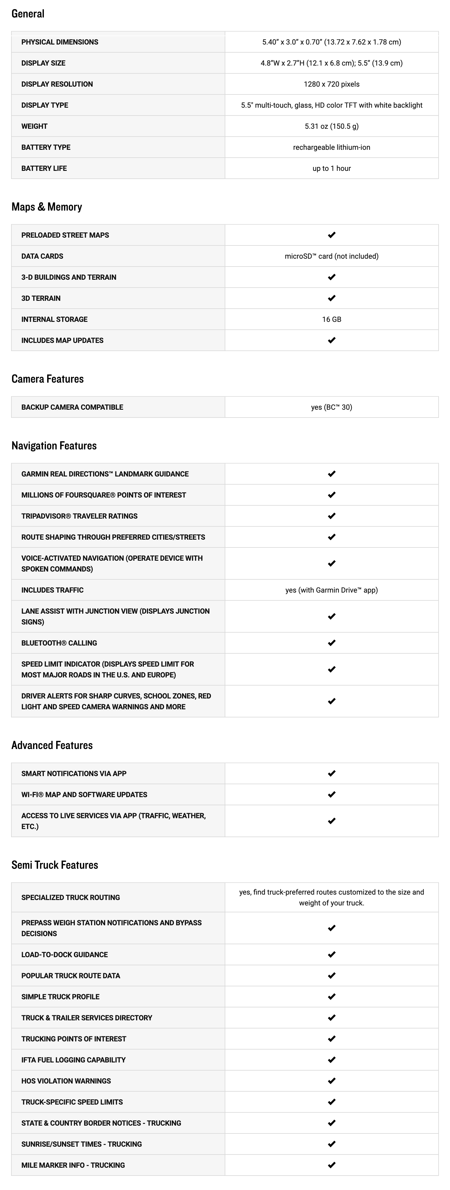 The Garmin dēzl OTR500 features a sleek, ergonomic design that is not only visually appealing but also user-friendly. The 5.5-inch touchscreen is designed for easy navigation, even in challenging driving conditions.