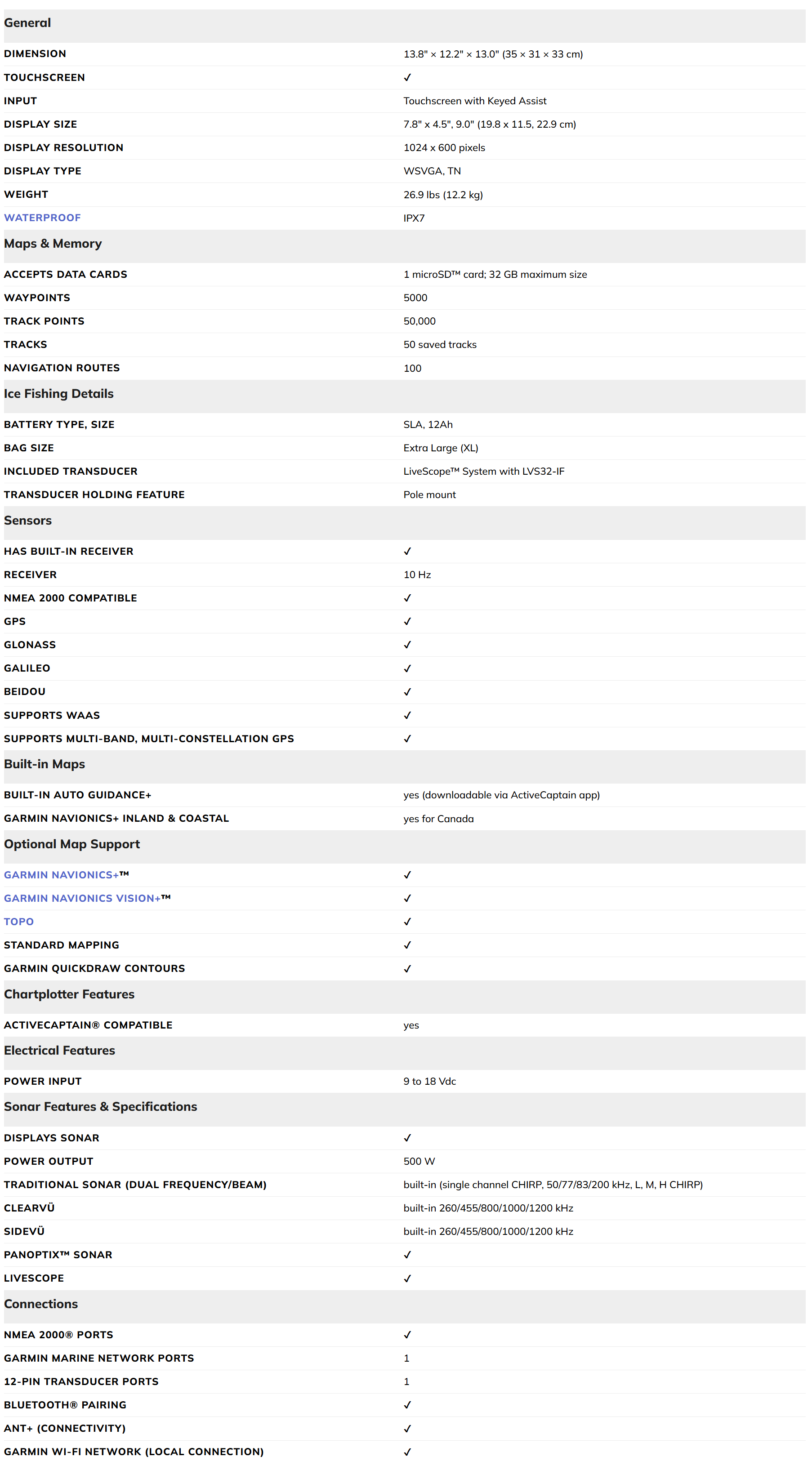 - LiveScope Sonar: View fish and underwater structures in real-time up to 200 feet in front of you.