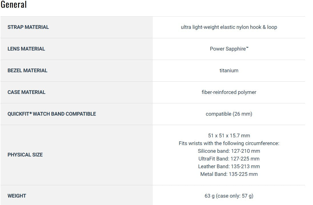 • Band: UltraFit nylon band designed for comfort during extended wear.