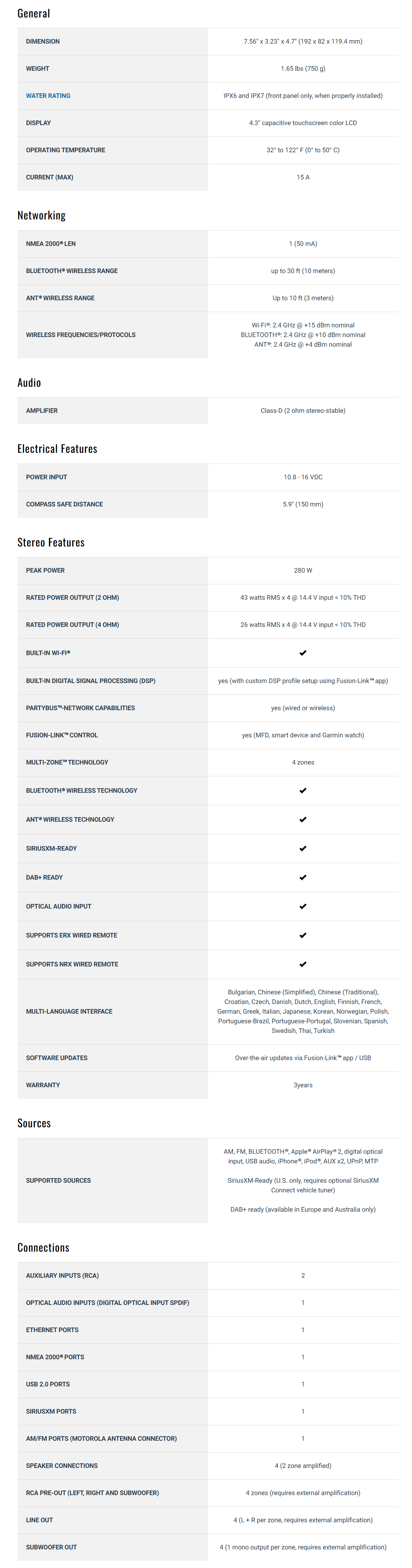 Garmin Fusion Apollo MS-RA770 Marine Stereo With Built-in Wi-Fi (010-01905-00)