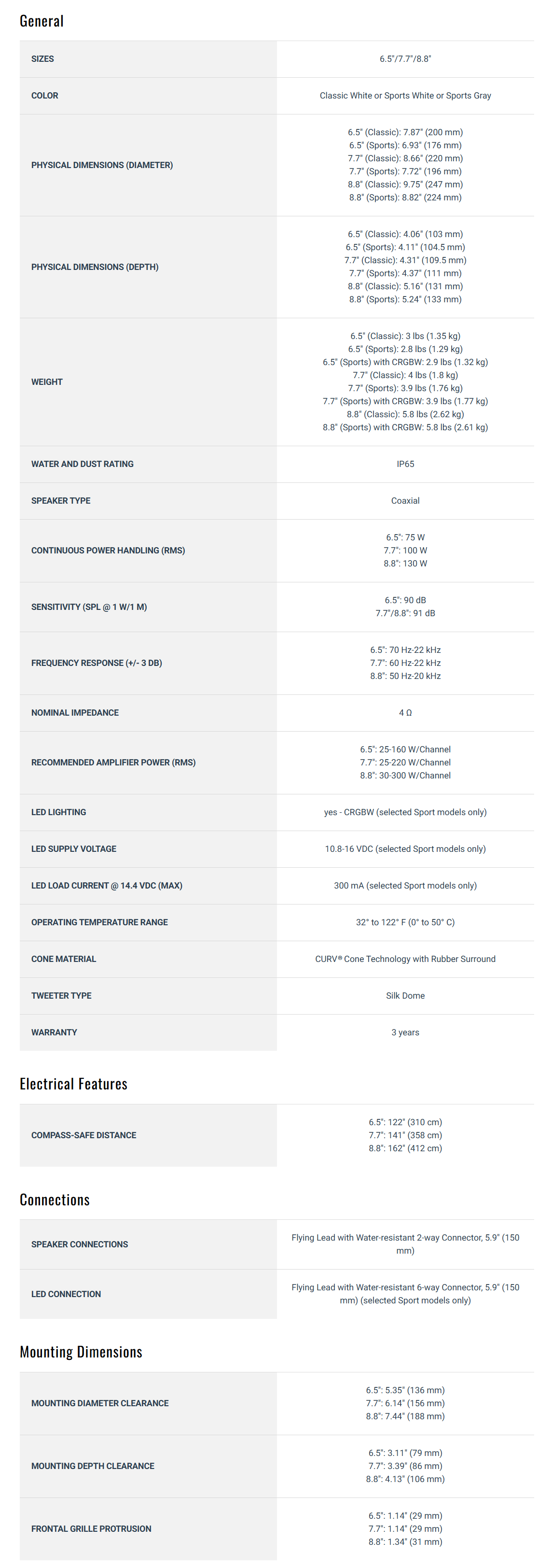 - High-Performance Marine Audio: Curv® Cone Technology for rich sound quality at high volumes.