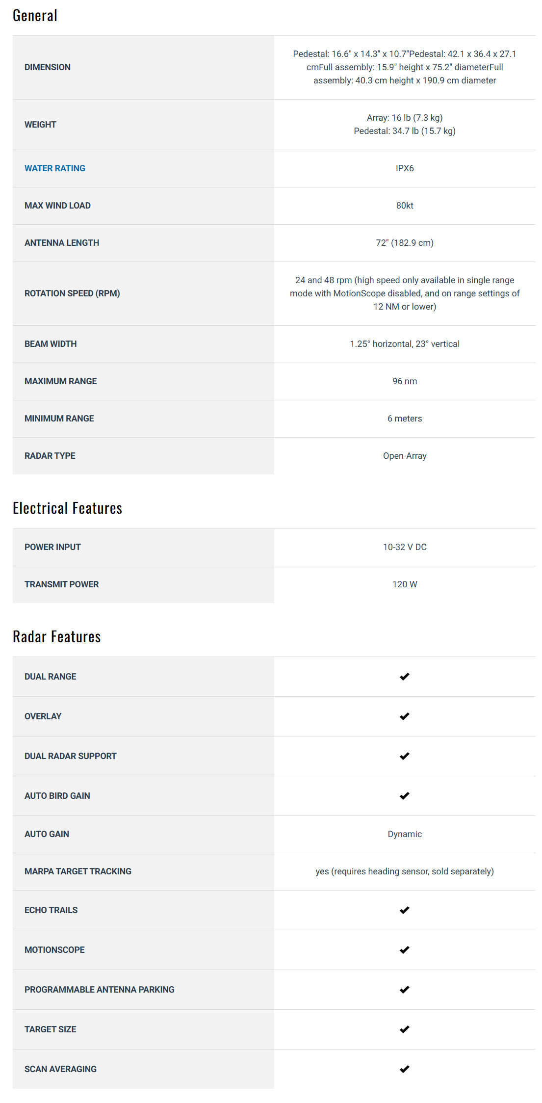 - Detection Range: Exceptional target tracking from 20 feet to 96 nautical miles.