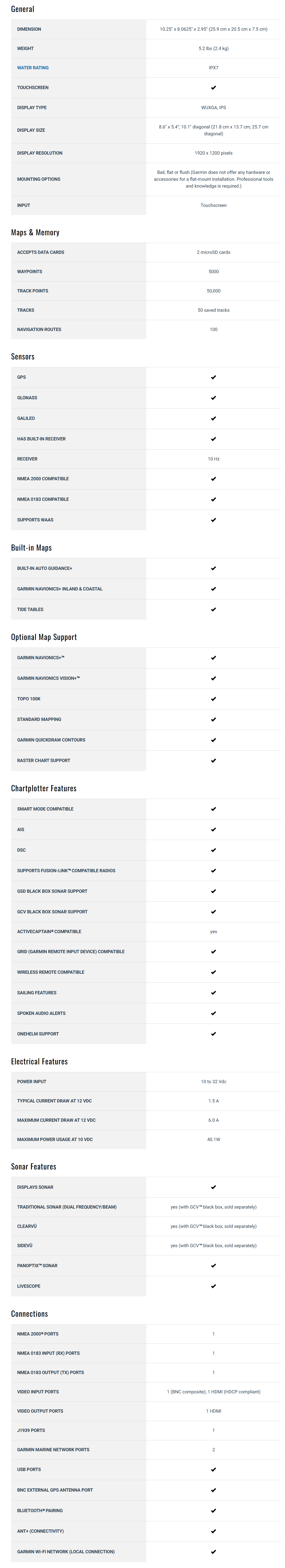 - Mapping Technology: Preloaded Garmin Navionics+™ Mapping with Auto Guidance+™ technology.