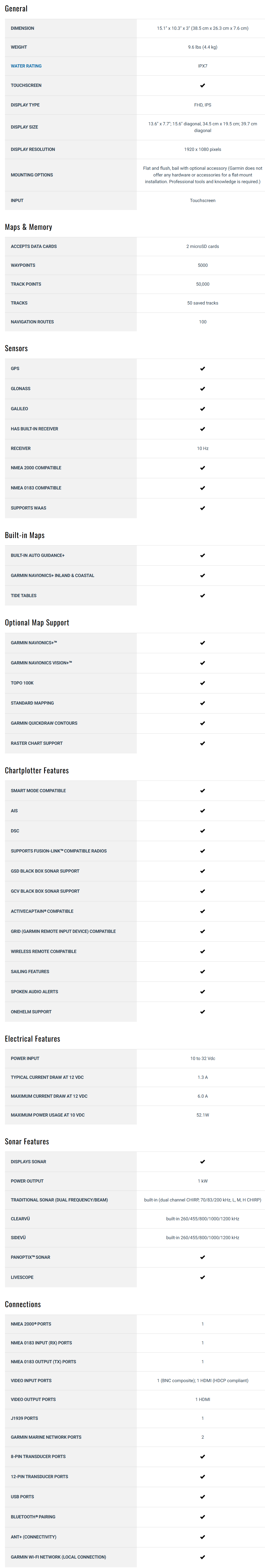 • Advanced Mapping: Preloaded Garmin Navionics+™ maps with Auto Guidance+™, ensuring simplified navigation.