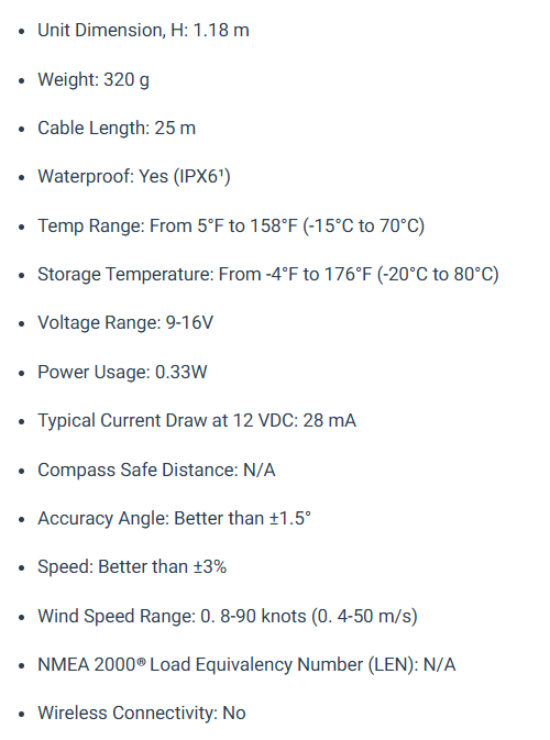 - Three-Bladed Propeller: Delivers accurate True Wind Speed (TWS), especially in light wind conditions, maintaining constant efficiency.