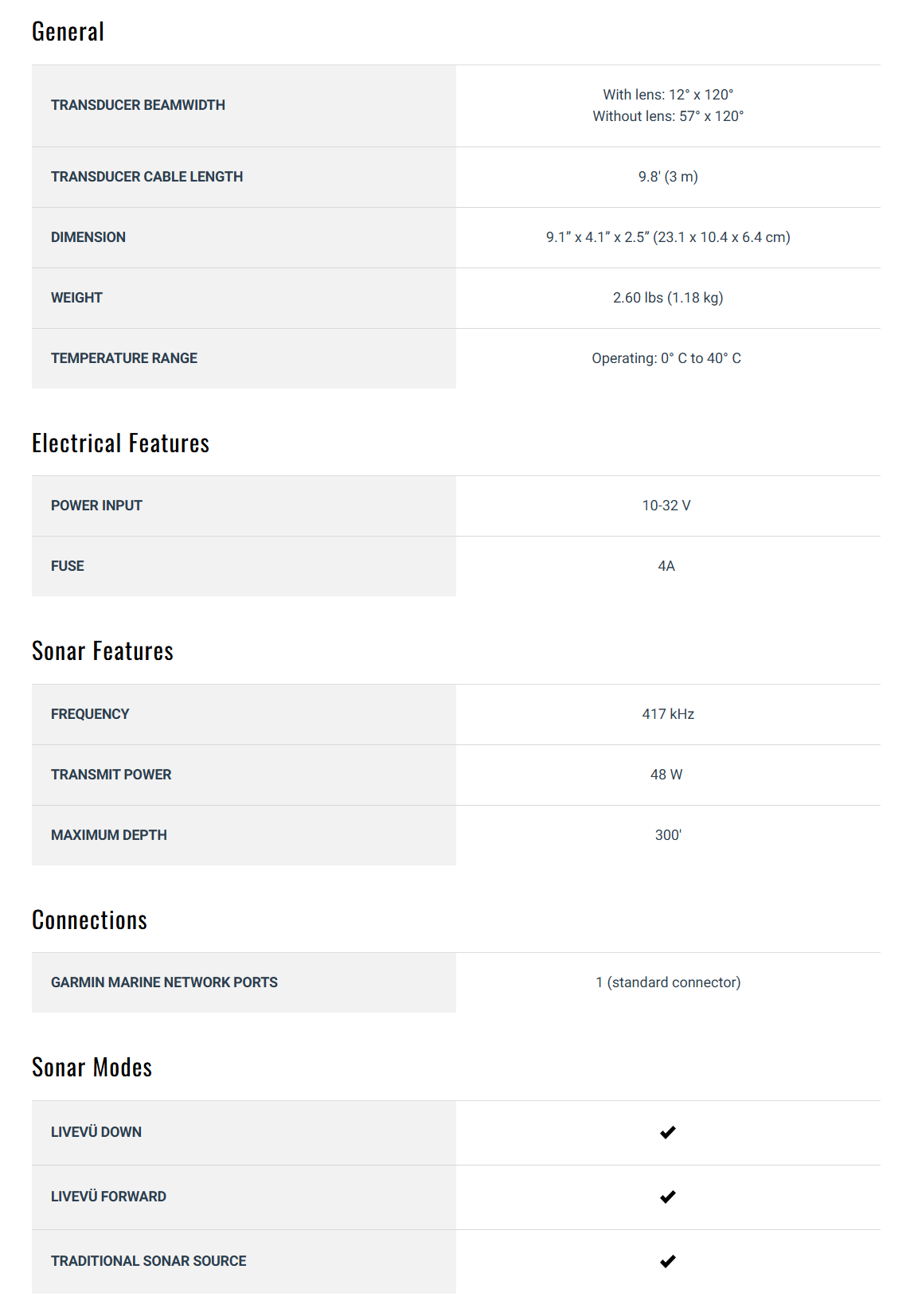 • Live Panoptix Sonar: Experience real-time tracking with two powerful sonar modes: LiveVü™ Forward and LiveVü™ Down.