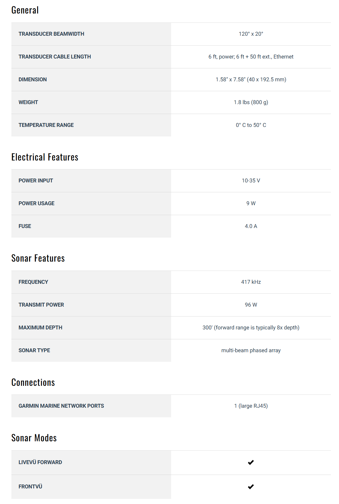 • FrontVü Forward-Looking Sonar: Displays the bottom up to 300 feet ahead in real-time, ideal for navigating complex waterways.