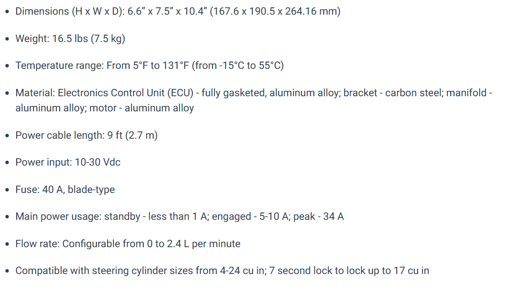 • Universal Compatibility: Works with nearly all hydraulically steered boats, simplifying installation and operation.