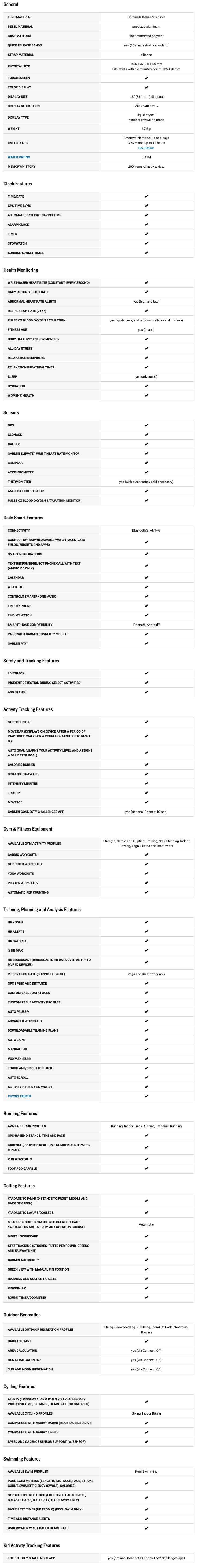 - Garmin Pay: Make contactless payments quickly and conveniently right from your wrist.