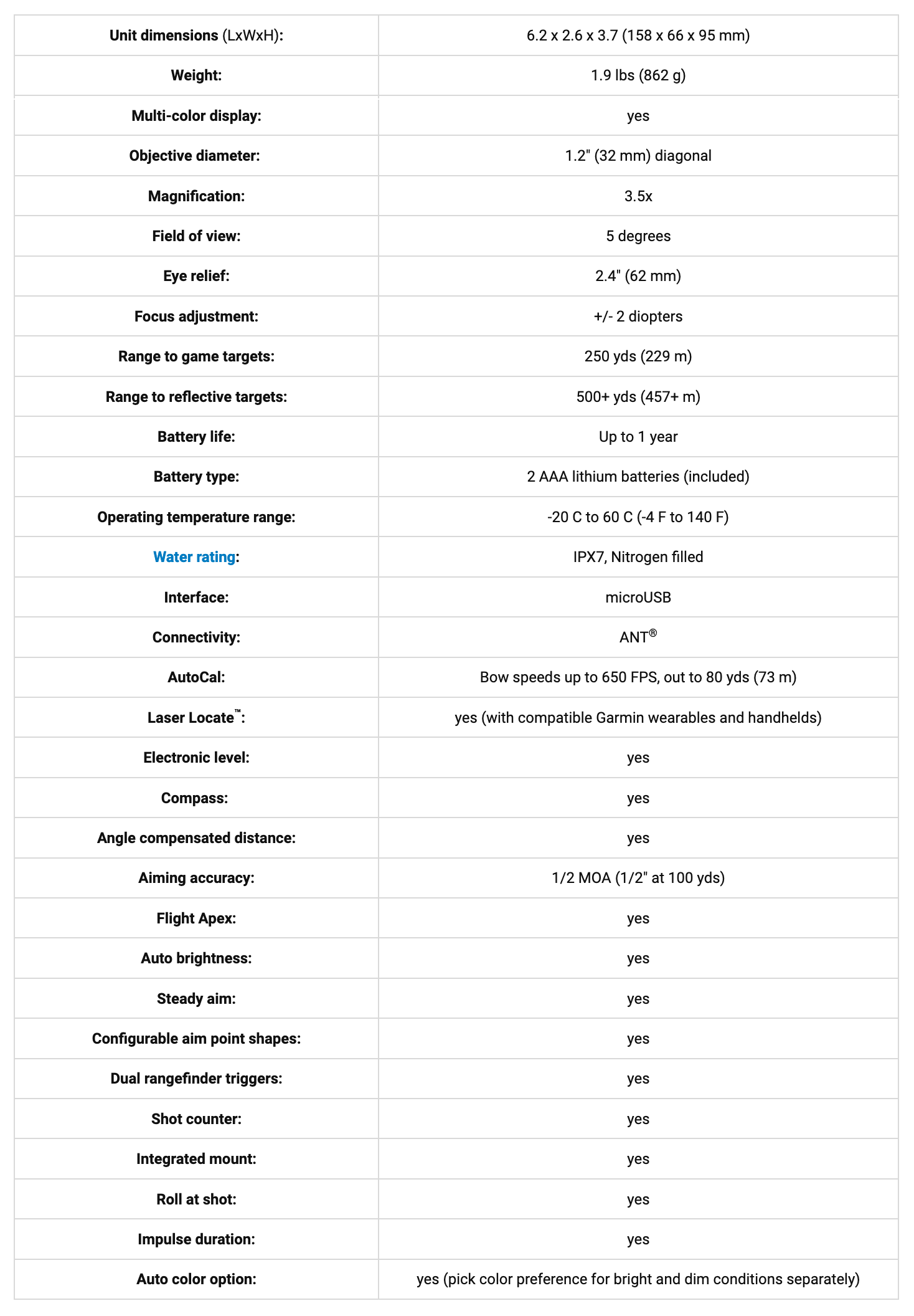 • Laser Locate™ Feature: Mark critical locations post-shot, enhancing tracking capabilities with compatible Garmin GPS devices.