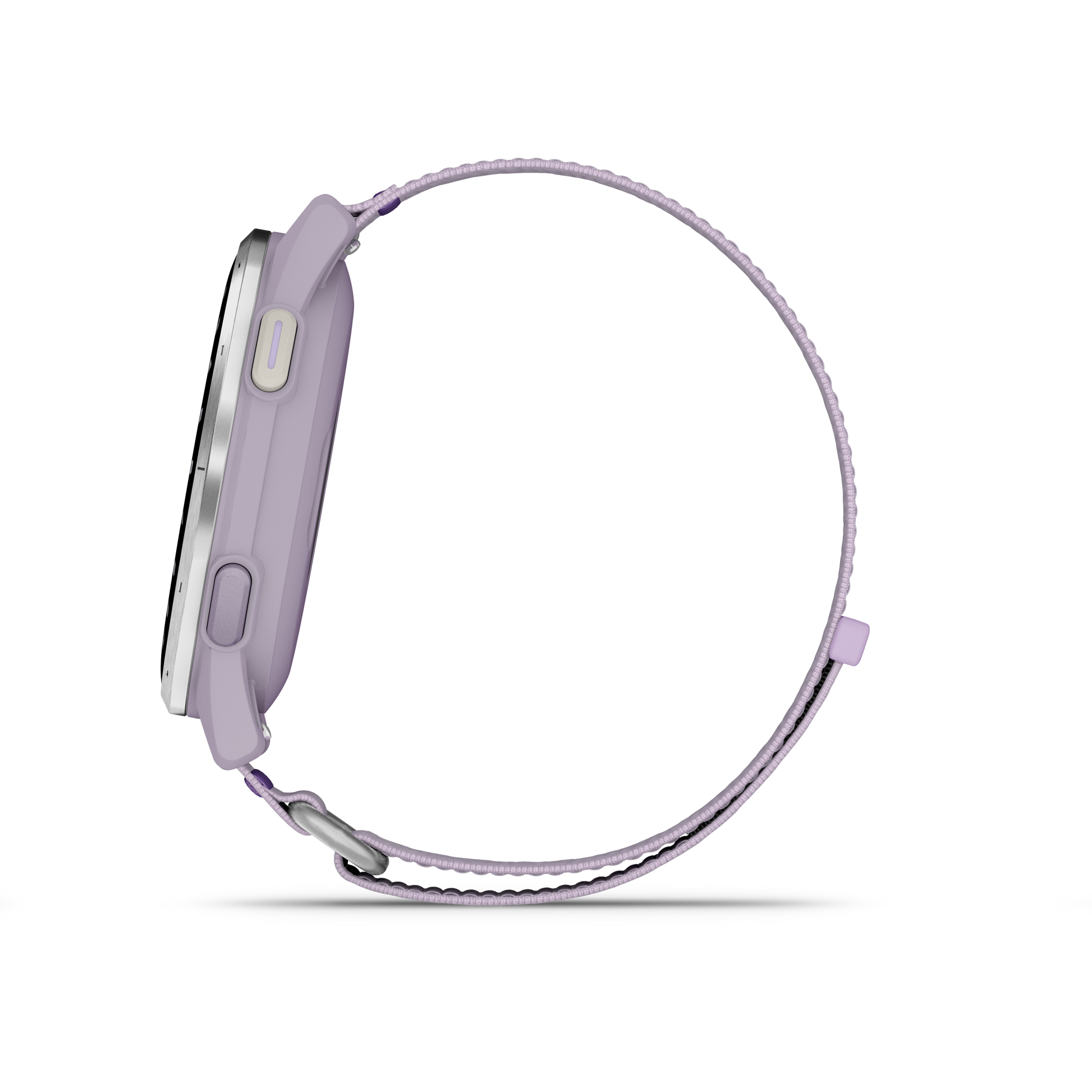- ComfortFit lilac fabric band offers breathable comfort tailored to youthful wrists.