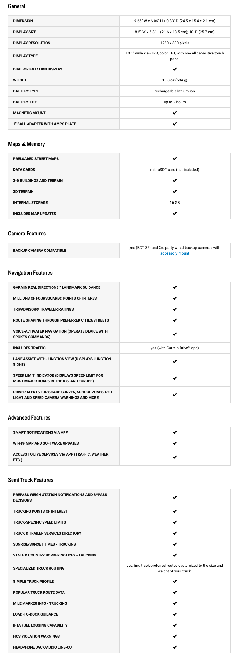 - Cumplimiento de ELD: funciona con ELD compatible con Garmin eLog para un registro de horas de servicio sin complicaciones y sin suscripciones adicionales.