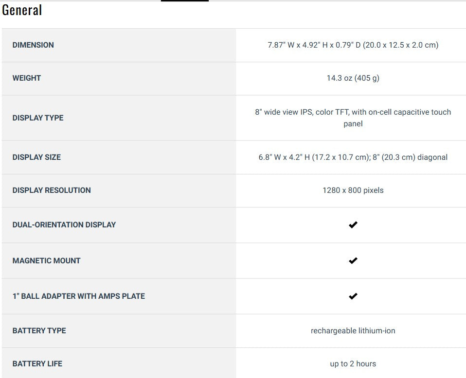 - Pantalla táctil nítida de 8" : ofrece una pantalla de alta resolución para una fácil lectura en todas las condiciones.