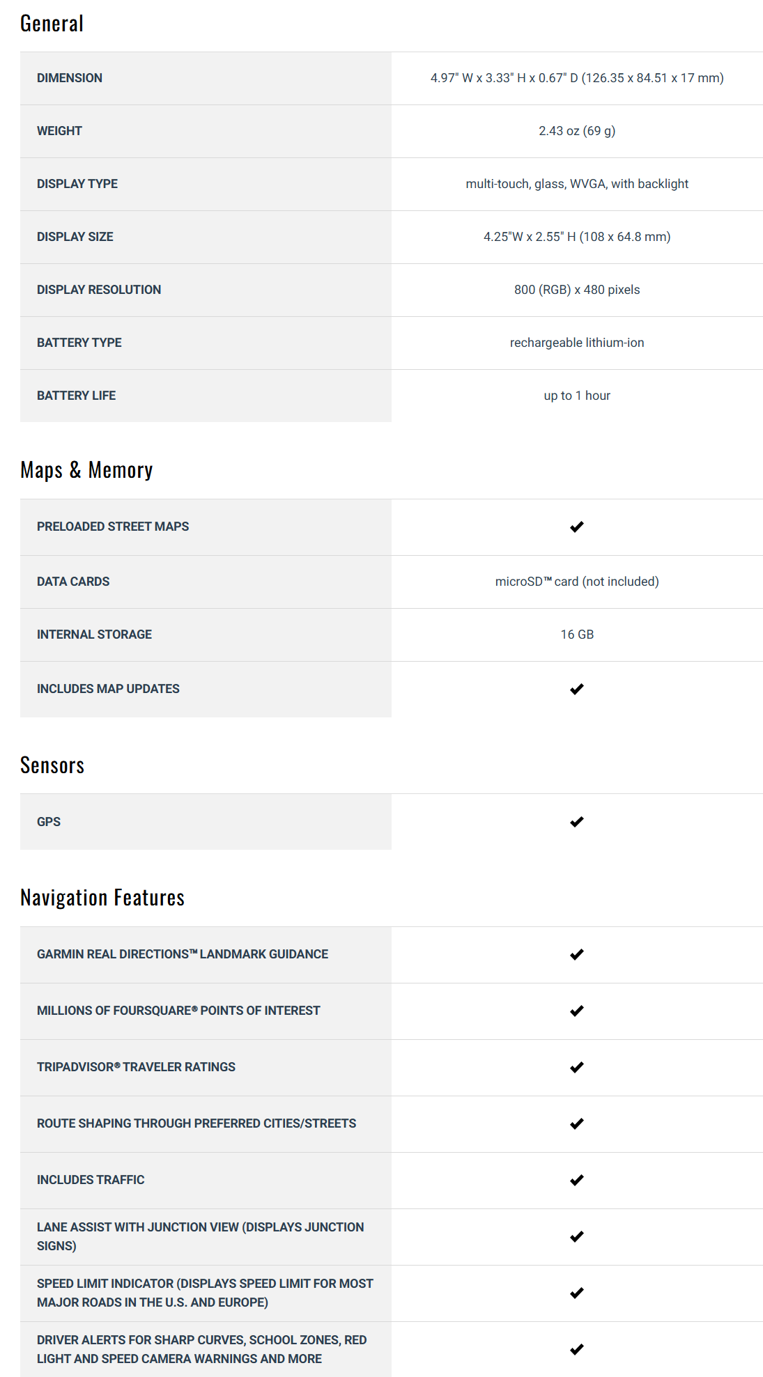 - Garmin Real Directions™ : proporciona indicaciones habladas paso a paso utilizando nombres de calles, puntos de referencia y nombres de tiendas para una experiencia de navegación más amigable.