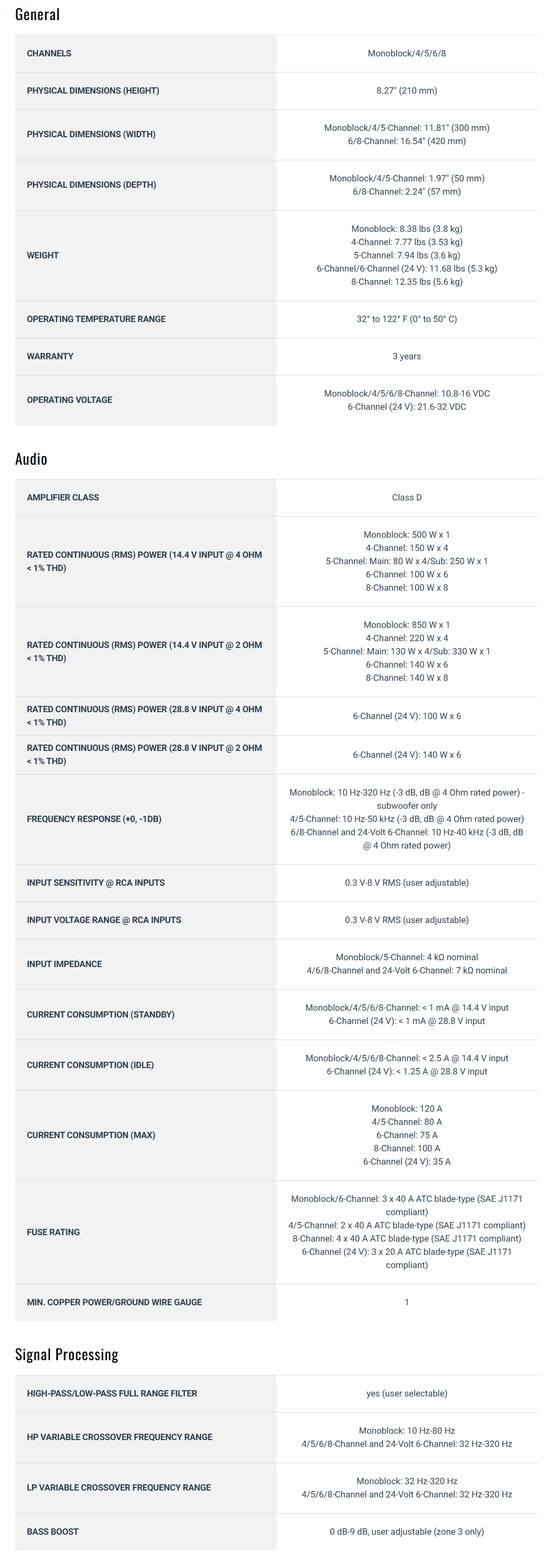 The Garmin Fusion Signature Series Marine Amplifier is engineered to deliver exceptional audio performance, with a total output of 1500 watts across six channels. Compared to traditional amplifiers, this model utilizes Class-D technology to achieve over 80% efficiency, minimizing power consumption while maximizing sound quality. Its ability to support multiple speaker configurations allows for a customizable audio experience that can adapt to any marine setting.