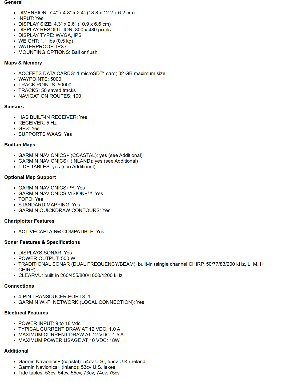 - Preloaded Garmin Navionics+ Maps (Canada Inland): Comprehensive coverage of Canadian inland waters with a one-year subscription for daily updates.