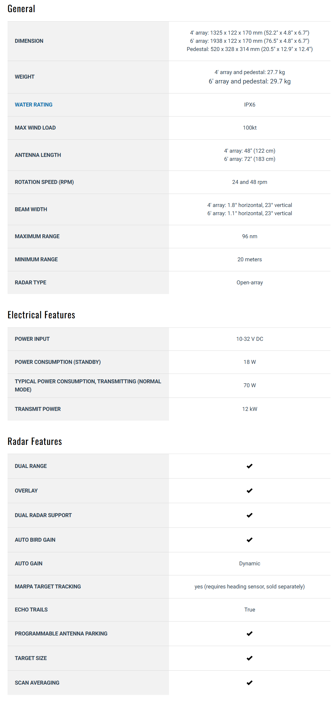 - Powerful Range: Available in 4 kW, 12 kW, or 25 kW outputs, with a maximum detection range of up to 96 nautical miles (for the 25 kW model).