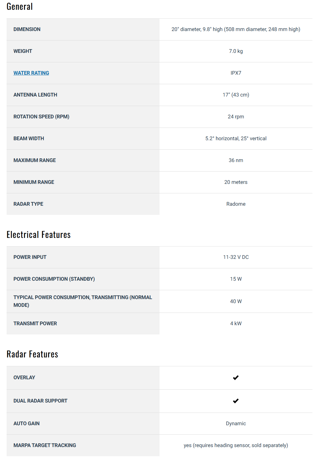 - 4kW Power Output: Provides clear echo definition at all ranges, with a maximum range of 36 nautical miles.