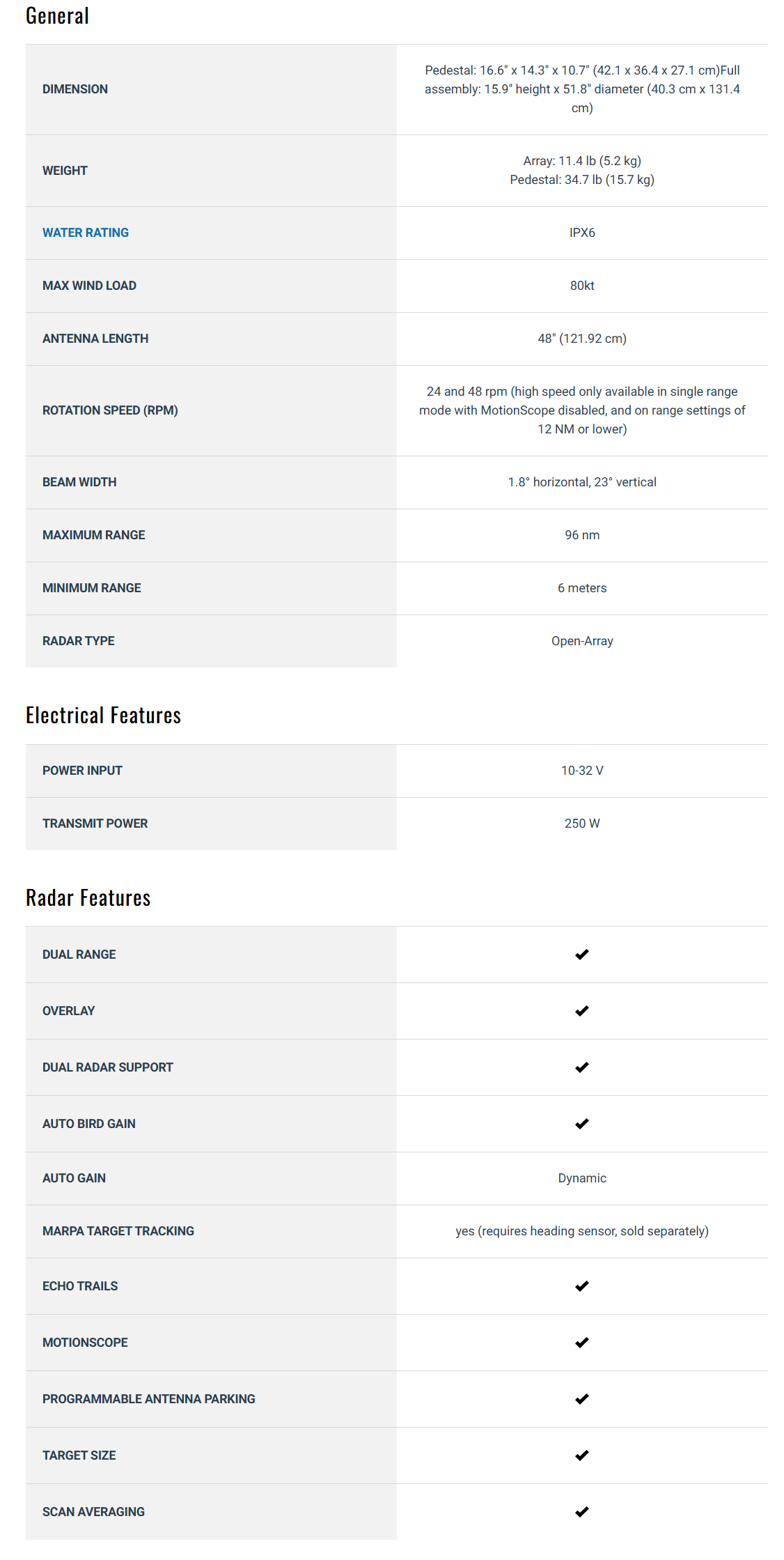 - 250-Watt Power Output: Detect targets from 20' to 96 nautical miles, ideal for both short and long-range navigation.