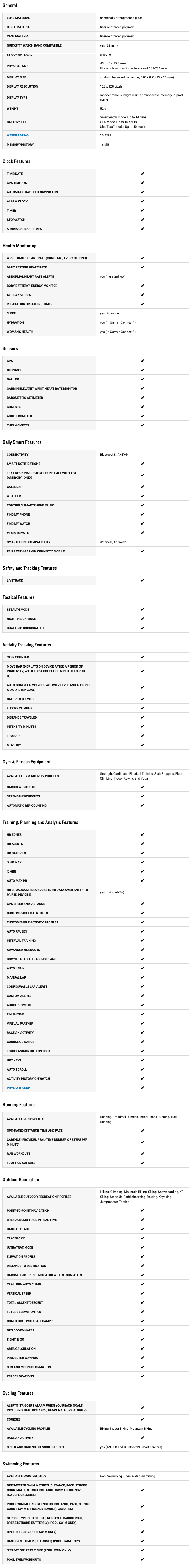 - Batería de larga duración: disfrute de hasta 14 días en modo reloj inteligente, 16 horas en modo GPS y 40 horas en modo de ahorro de batería UltraTrac.