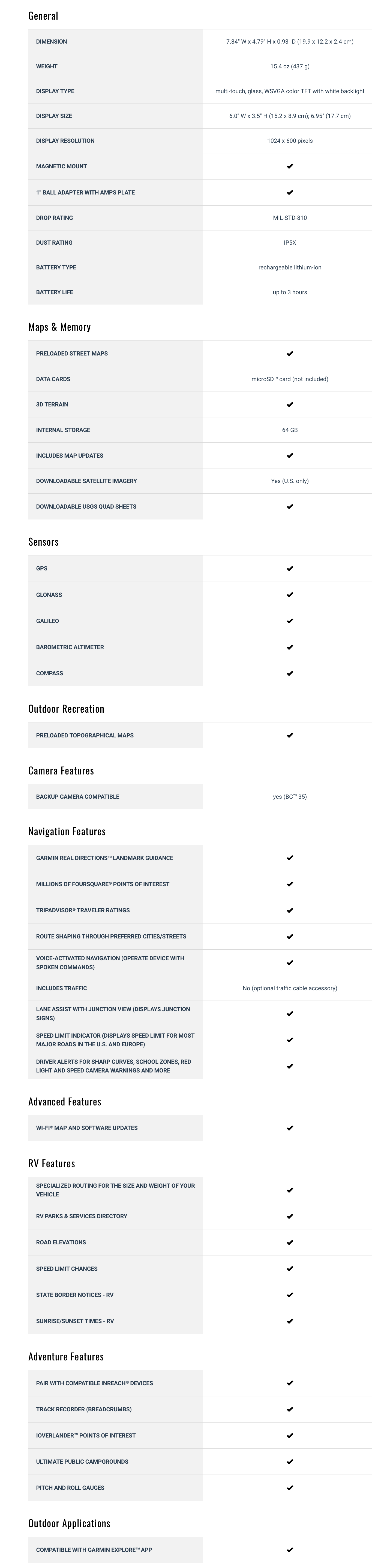 - Pantalla táctil versátil: una pantalla táctil a color de 7” proporciona instrucciones paso a paso para la navegación por carretera y mapas topográficos detallados para la exploración todoterreno que cubren América del Norte y del Sur.
