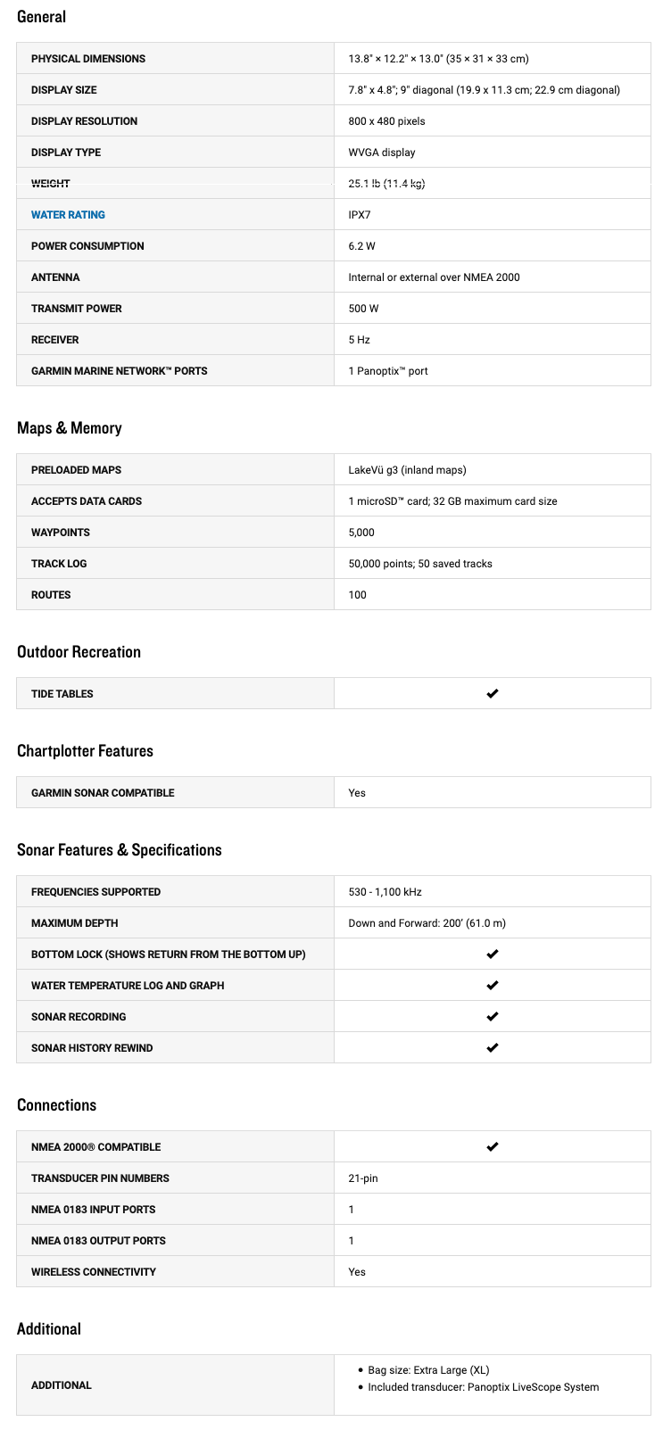 - Mapas LakeVü g3: precargados con mapas que cubren más de 18 000 lagos en los EE. UU., lo que garantiza que esté completamente equipado.