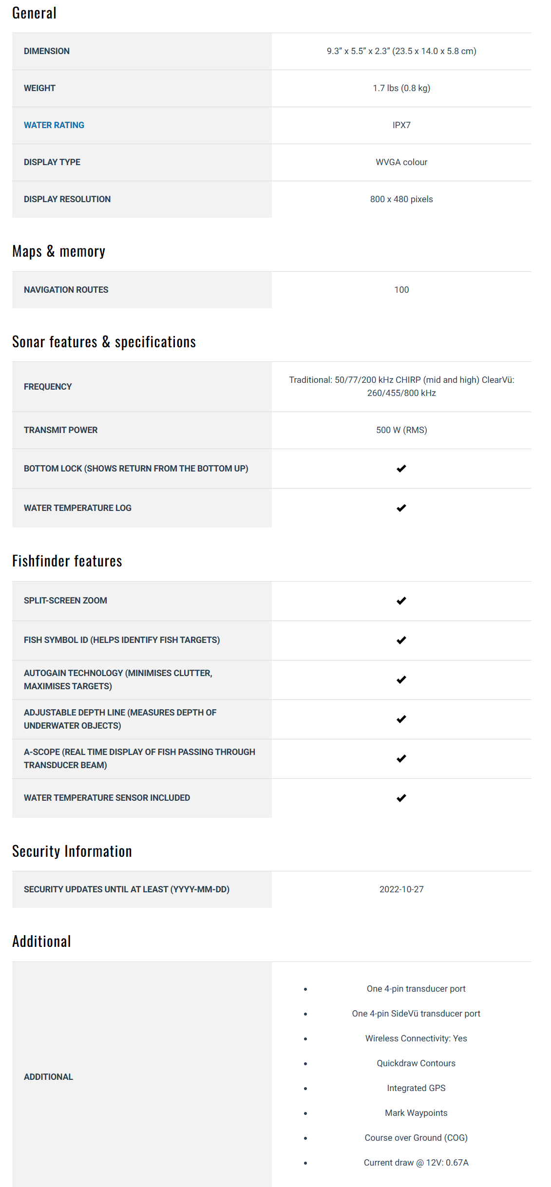 - CHIRP Sonar Support: Compatible with CHIRP traditional, ClearVü, and SideVü sonar (transducer sold separately).